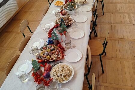 W tym uroczystym dniu Pani Dyrektor Agnieszka Tokarczyk złożyła życzenia wszystkim dzieciom, następnie wszyscy podzielili się opłatkiem i zasiedli do wigilijnego stołu, …