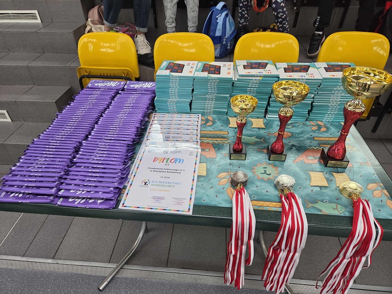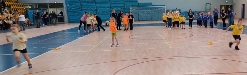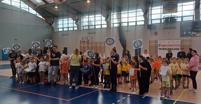 W środę 22 października dzieci z grupy III i IV, wzięły udział w zawodach sportowych pt. „IV Świętokrzyska Przedszkoliada”, organizowanych przez Kuratorium Oświaty w Kielcach. Zawody odbyły się na hali sportowej Miejskiego Centrum Sportu i Rekreacji W Skarżysku – Kamiennej. Przedszkolaki podczas tego wydarzenia rozwijały swoje umiejętności ruchowe i sprawność fizyczną. Nasza drużyna zajęła IV miejsce. Otrzymała pamiątkowy dyplom, a każdy uczestnik upominek. Gratulujemy serdecznie wszystkim zawodnikom.