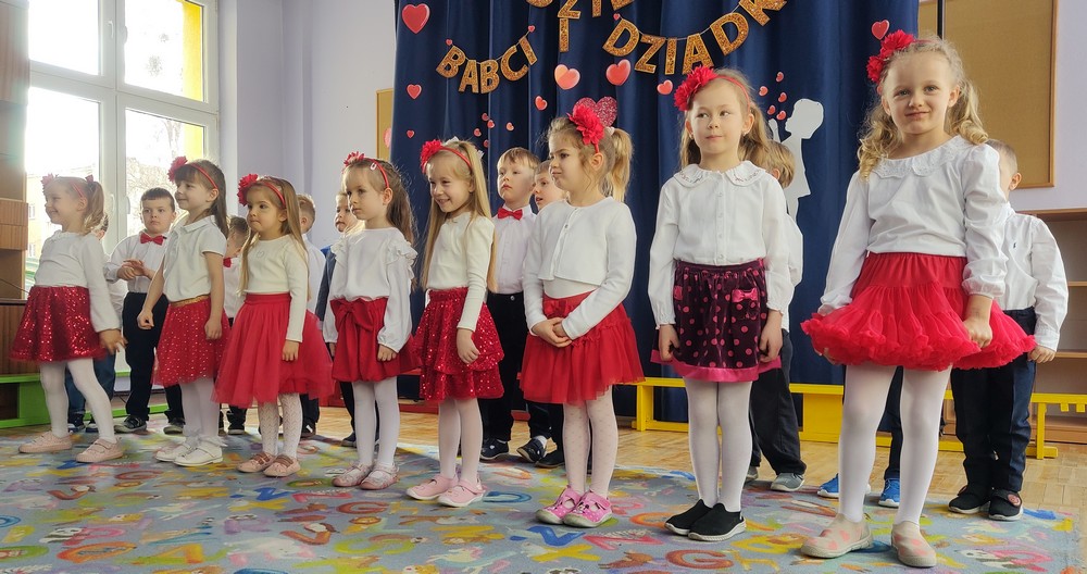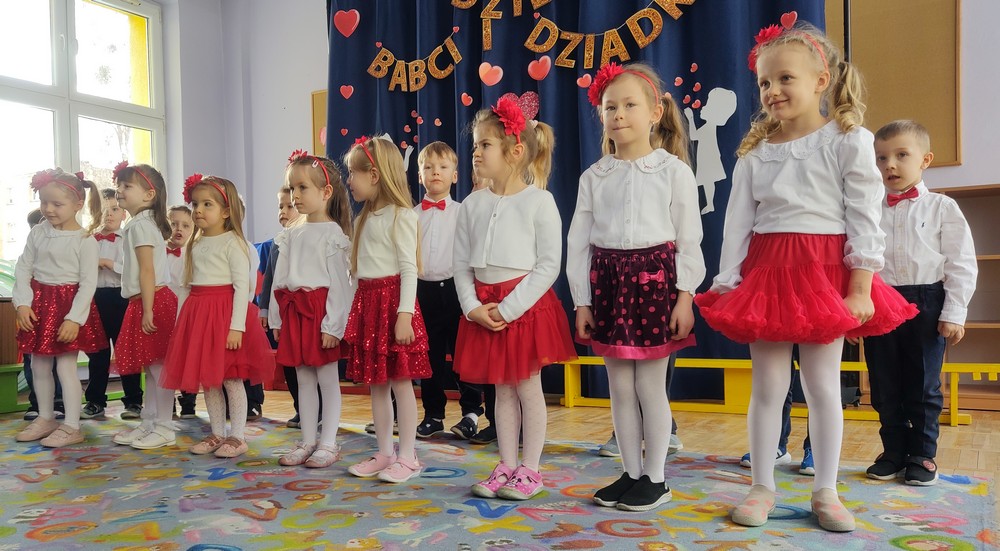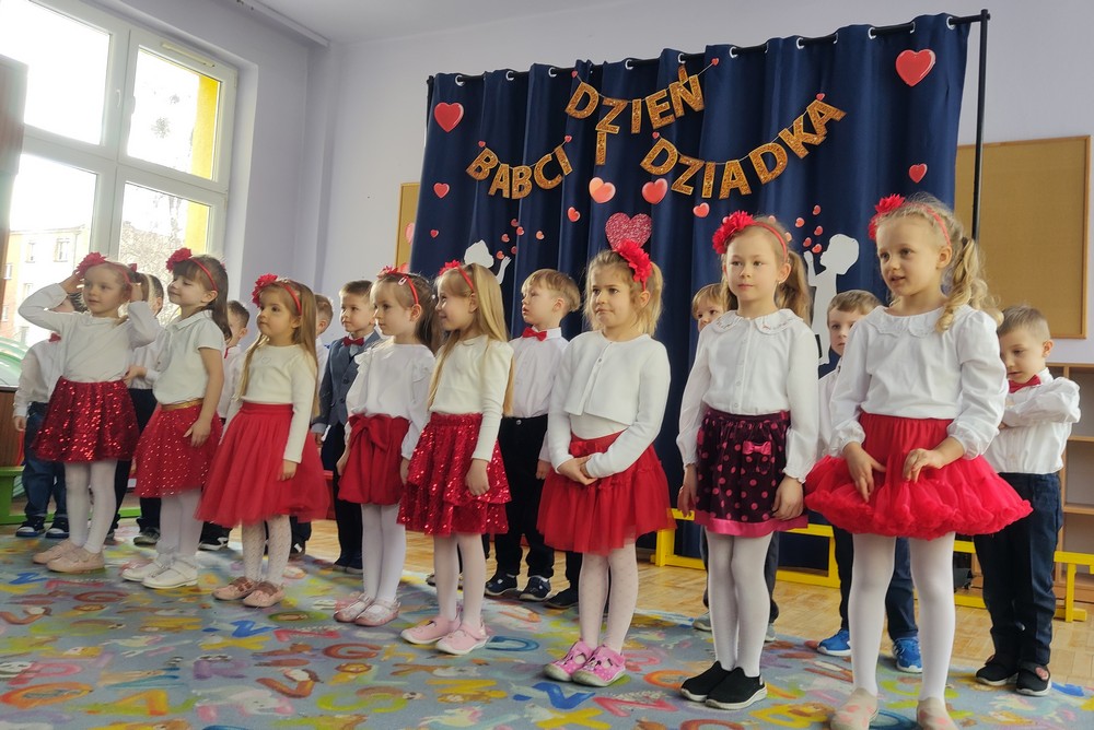 Z tej okazji przedszkolaki przedstawiły krótki program artystyczny – śpiewały piosenki, recytowały wierszyki oraz zaprezentowały tańce. Dziadkowie z dumą oglądali występ wnuków, a na zakończenie dzieci wręczyły wykonane własnoręcznie drobne upominki. Spotkanie odbyło się w ciepłej i radosnej atmosferze. To piękna okazja do spędzenia czasu razem i podkreślenie ważnej roli Babci i Dziadka w życiu dzieci.