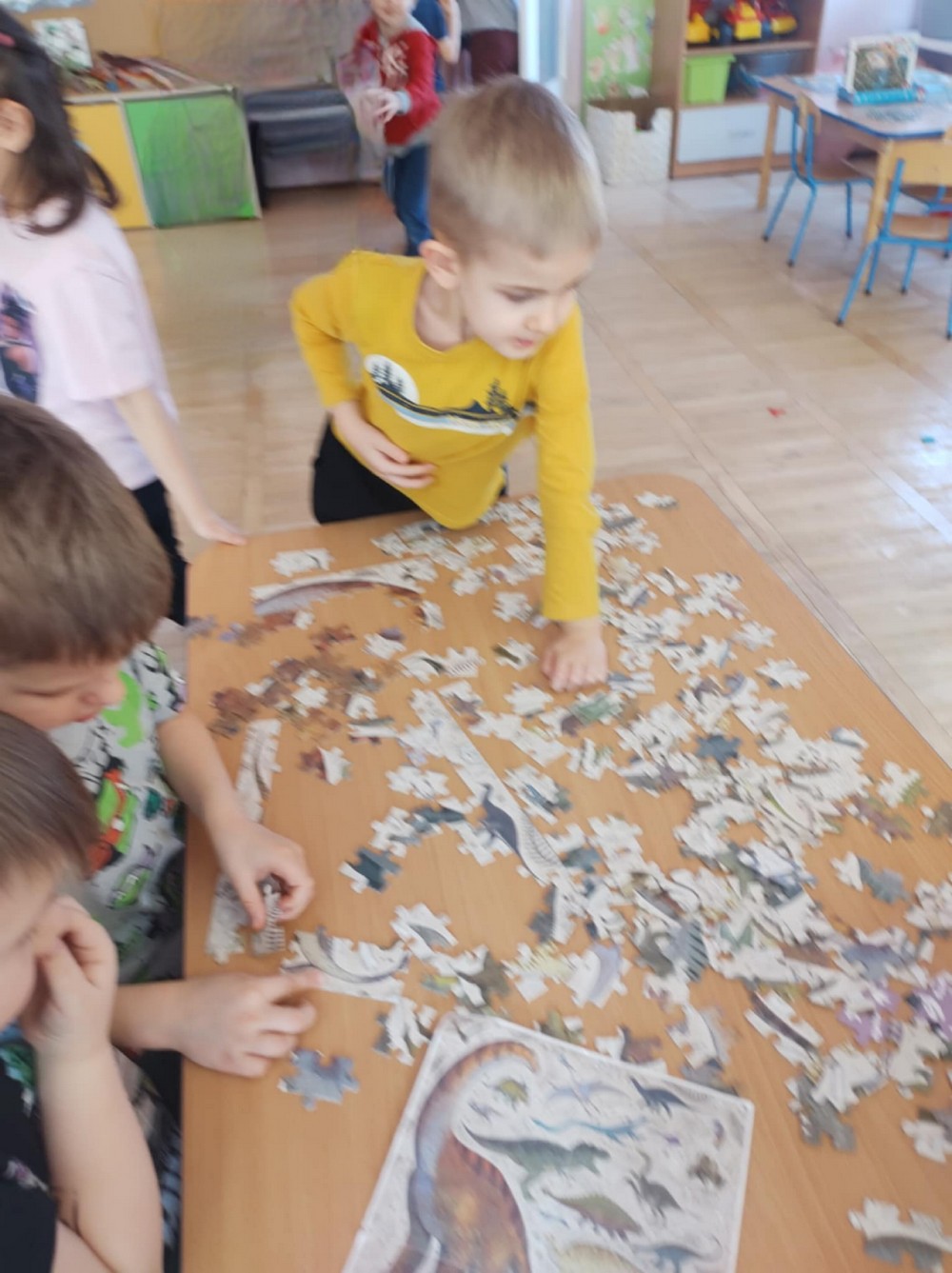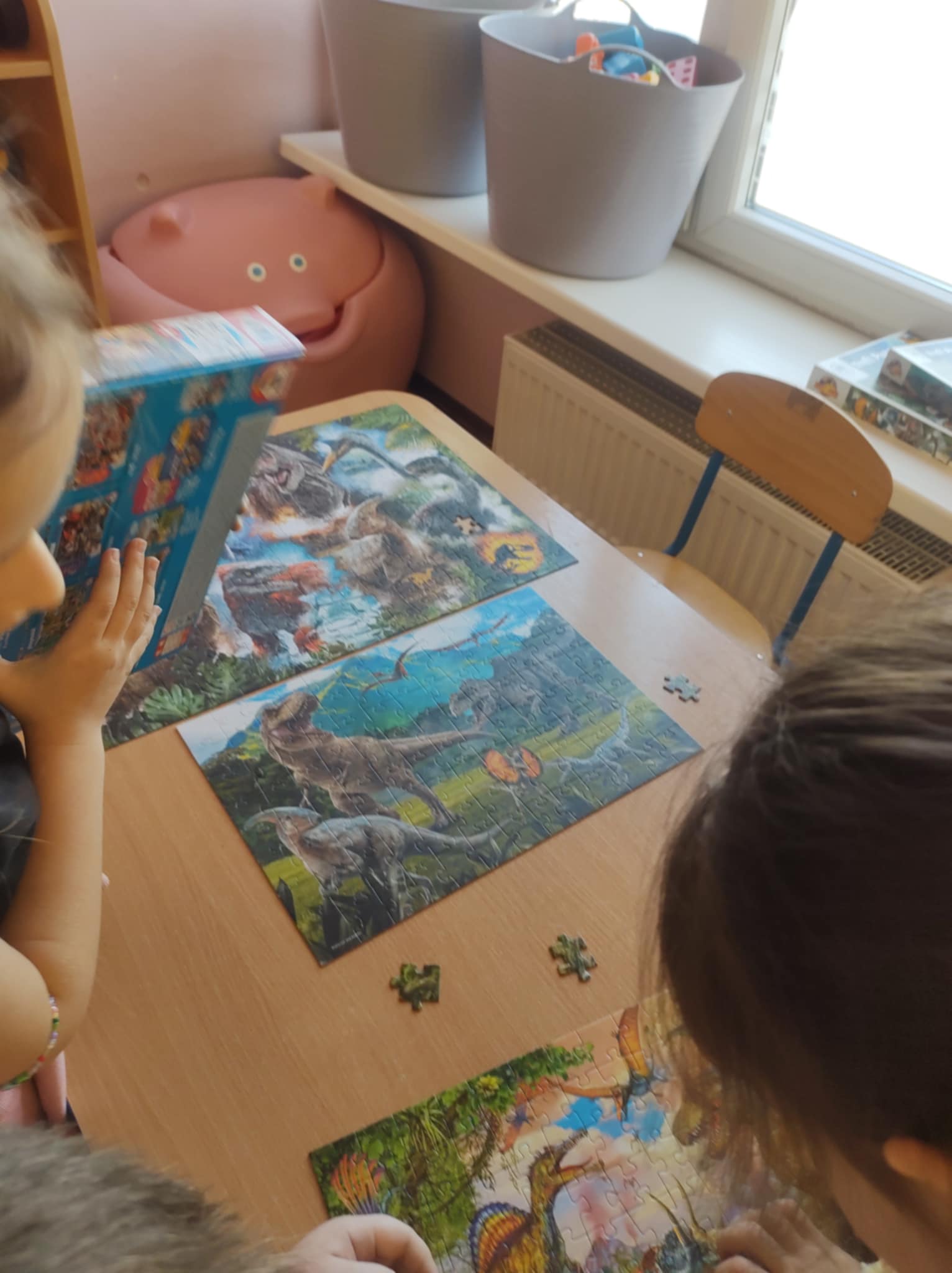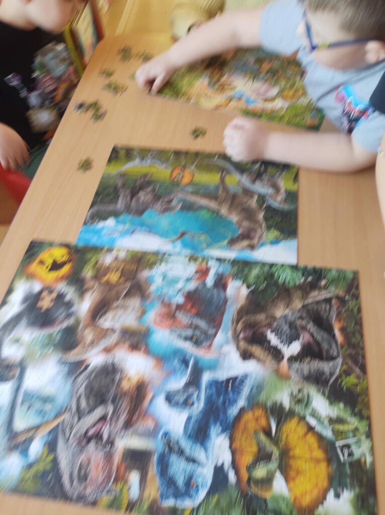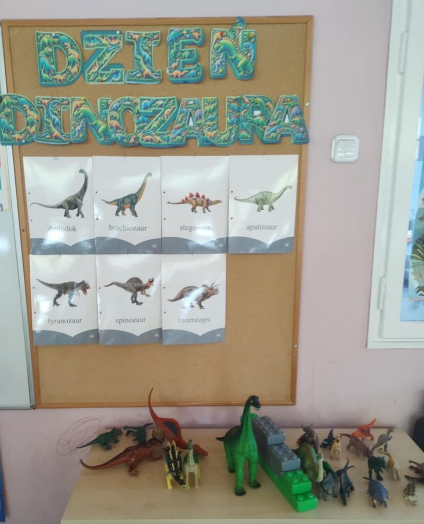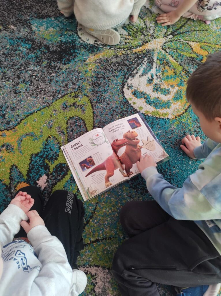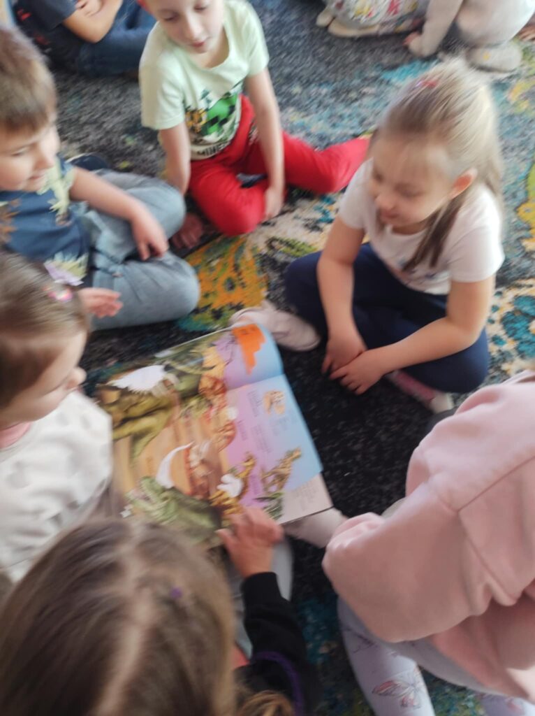 26 lutego „Biedronki” spędziły czas bardzo aktywnie i kreatywnie. Poznały świat prehistorycznych zwierząt, swoją ciekawość rozwijały poprzez słuchanie i oglądanie książeczek o życiu dinozaurów. Ten dzień był okazją do rozwijania wyobraźni, zdolności manualnych oraz współpracy w grupie.