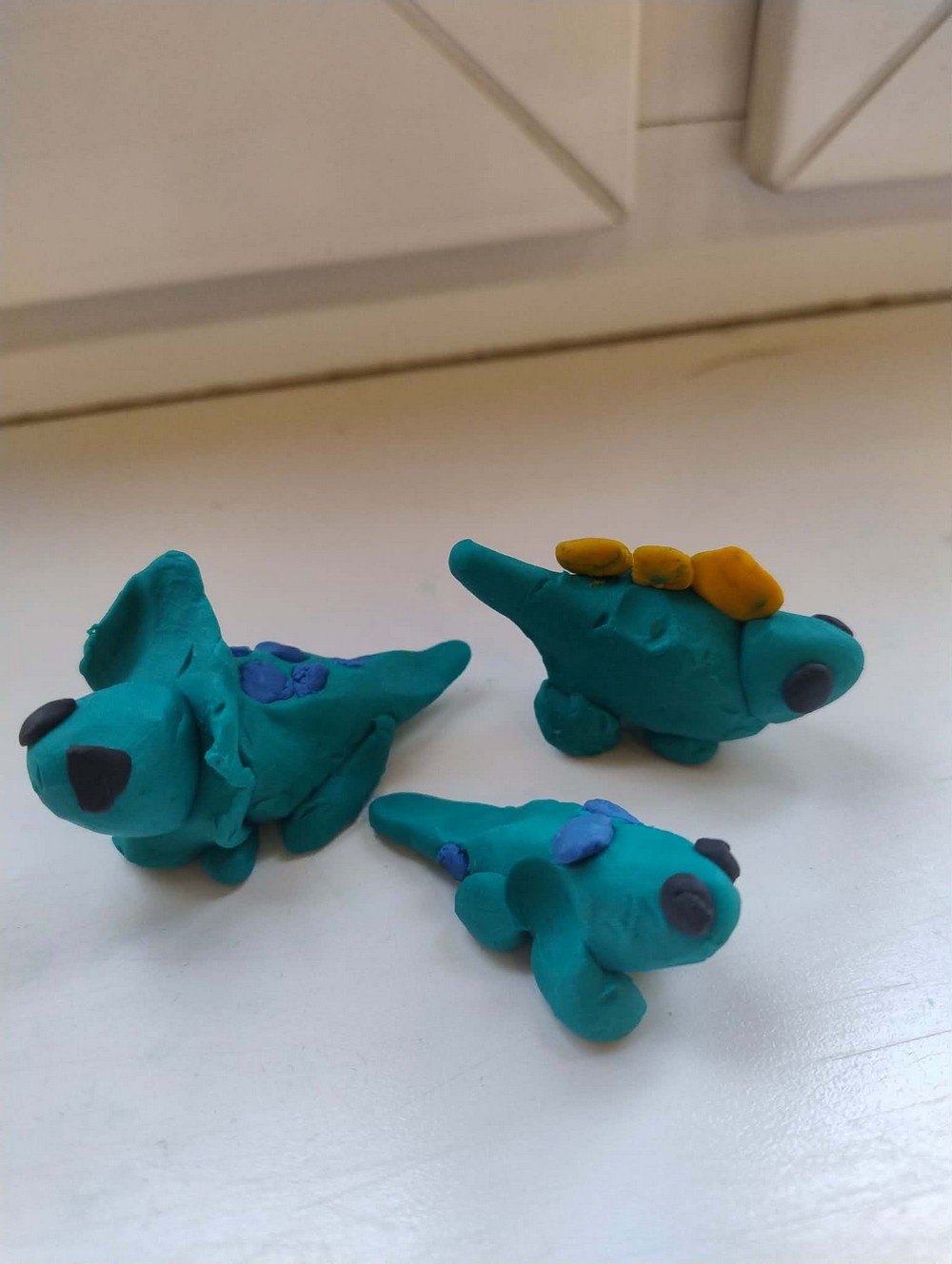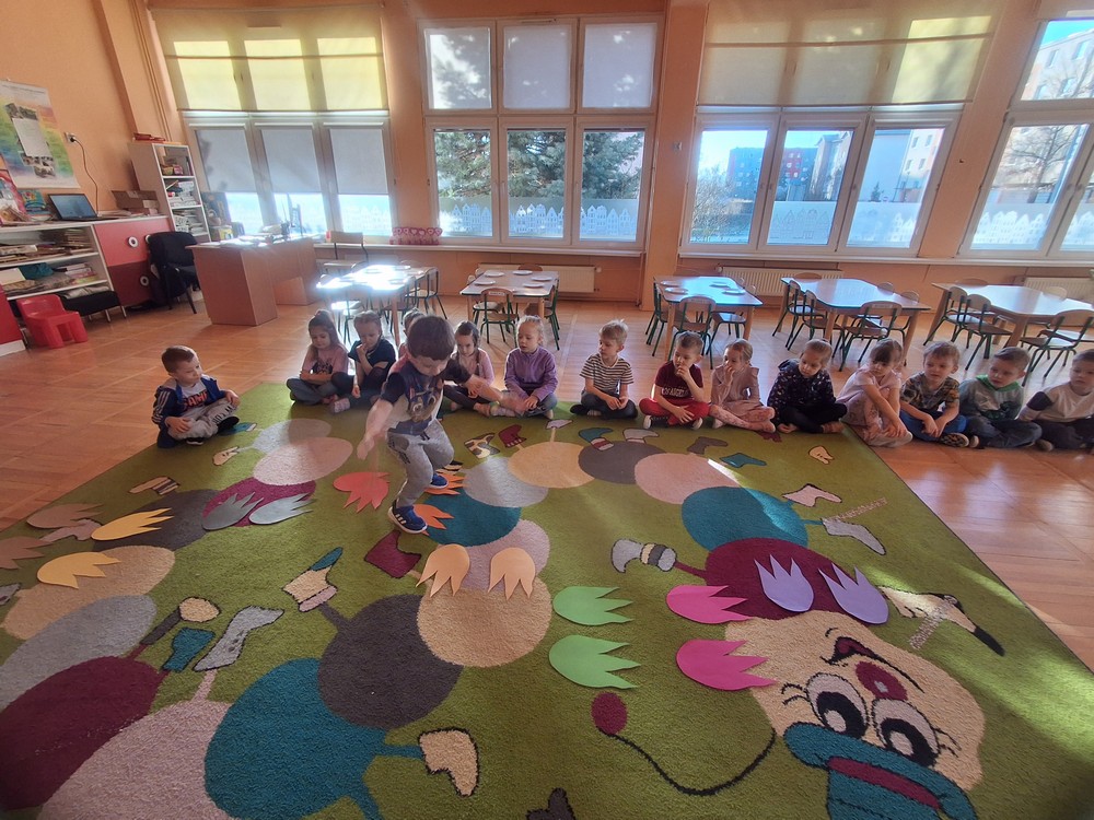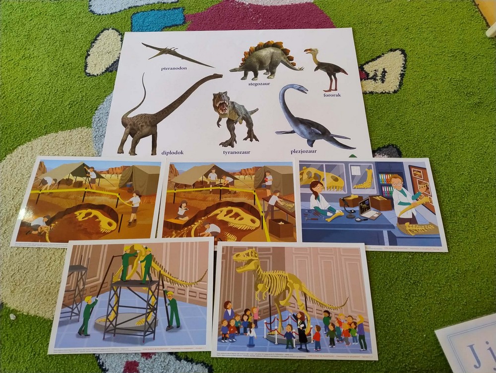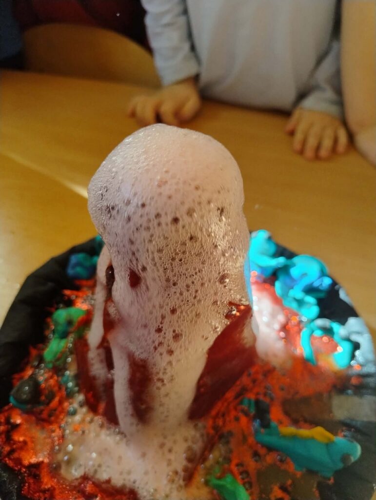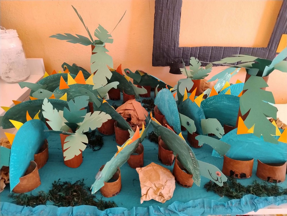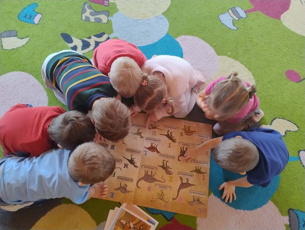 Dzieci z grupy „Muchomorki” poznały różne gatunki dinozaurów, oglądały ilustracje oraz słuchały ciekawostek na ich temat. Brały udział w zabawach ruchowych, naśladując dinozaury, chodziły ich śladami, a także wykonywały prace plastyczne – lepiły z plasteliny prehistoryczne zwierzęta. Nie zabrakło również eksperymentu wulkanicznego, z którego wybuchała lawa oraz tworzenia wspólnej makiety.