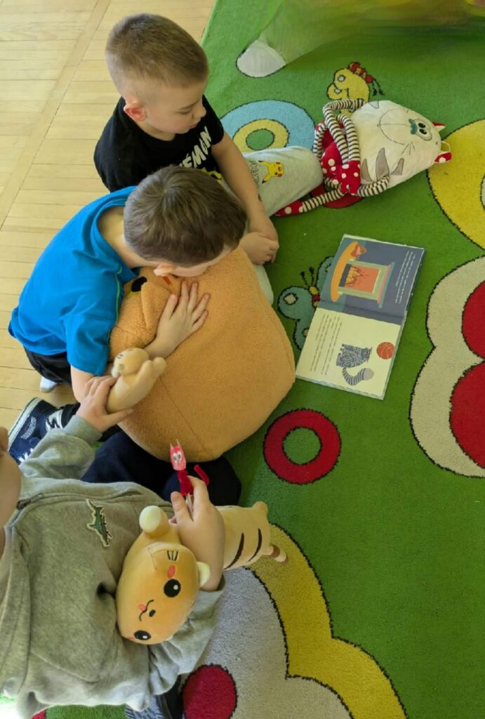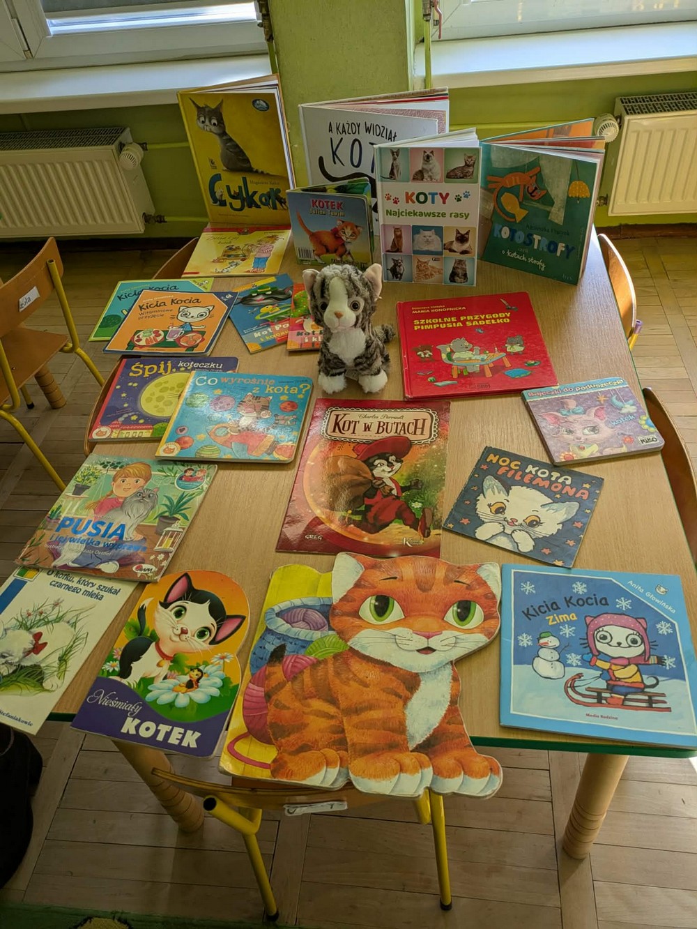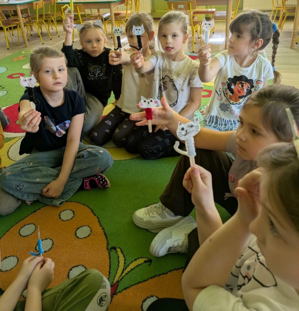19 lutego dzieci z grupy „Motylki” z Przedszkola nr 16 gościły p. Agnieszkę – bibliotekarkę z Filii nr 2. Spotkanie zostało zorganizowane z okazji Światowego Dnia Kota, który przypada 17 lutego. Podczas zajęć przedszkolaki z radością opowiadały o swoich domowych pupilach. Nie zabrakło również ciekawostek o kotach oraz krótkich wierszyków o tych sympatycznych zwierzętach. Dzieci z dużym zainteresowaniem wysłuchały książeczki Agaty Romaniuk „Precelek i pierwszy śnieg”. Tego dnia „Motylki” przyniosły do przedszkola swoje pluszowe kotki, które towarzyszyły im podczas całego spotkania. Przedszkolaki chętnie oglądały również przygotowaną mini-wystawkę książek, których bohaterami były koty i kocięta. Na zakończenie zajęć dzieci otrzymały kolorowanki z kotkami oraz słodki upominek. W podziękowaniu za wspólne spotkanie wręczyły pani Agnieszce własnoręcznie wykonaną pracę – uroczego kotka.