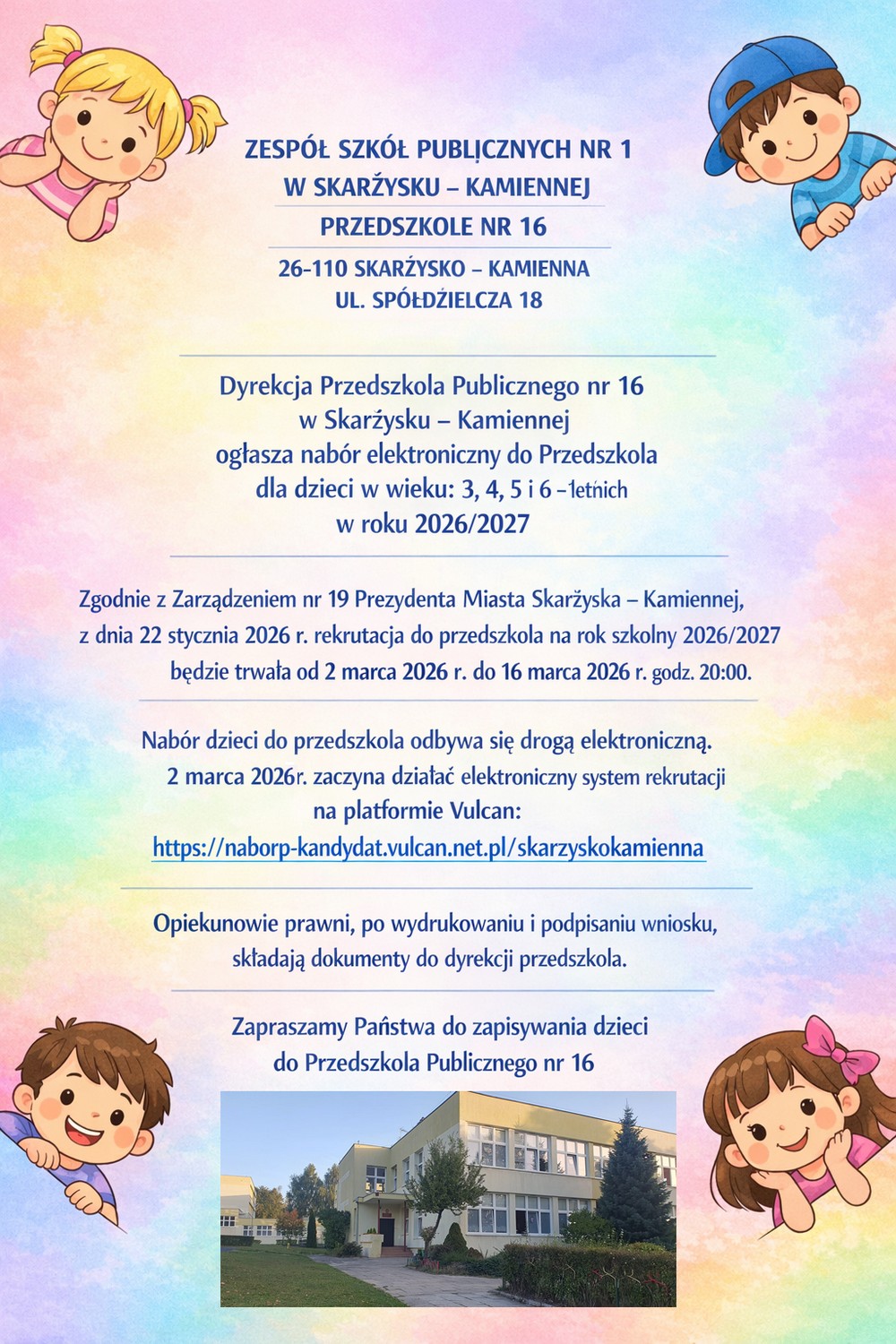 Nabór elektroniczny do przedszkola dla dzieci w roku 2026/2027 https://naborp-kandydat.vulcan.net.pl/skarzyskokamienna