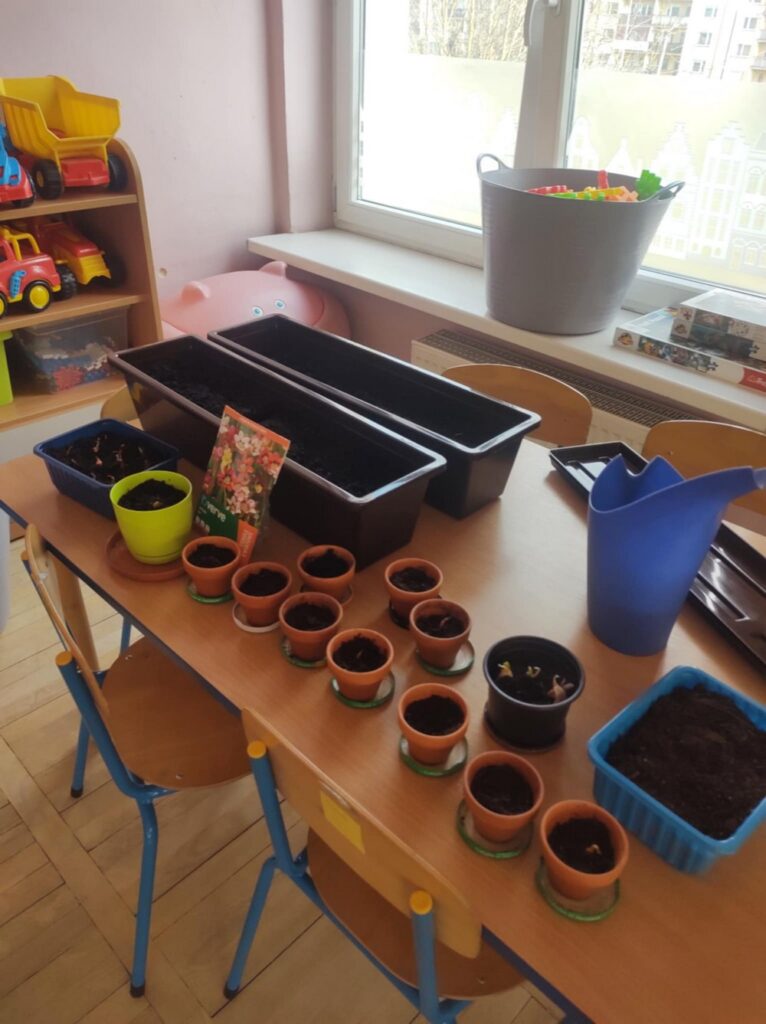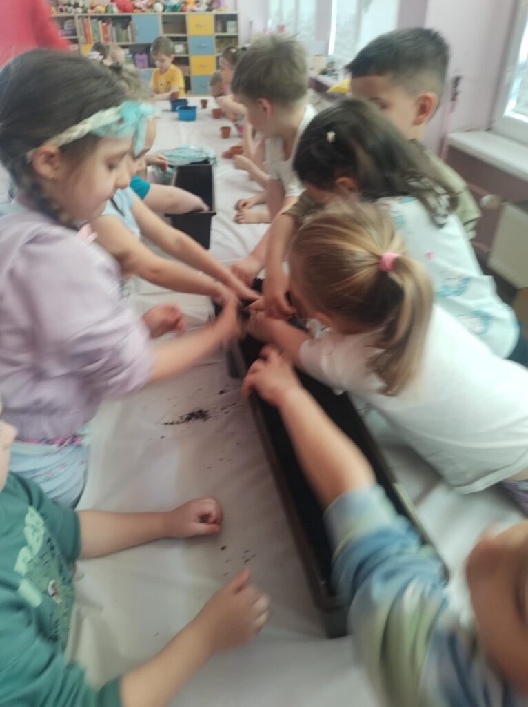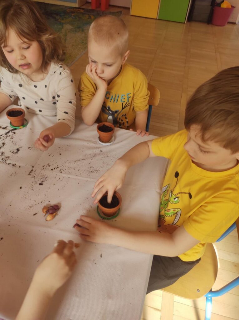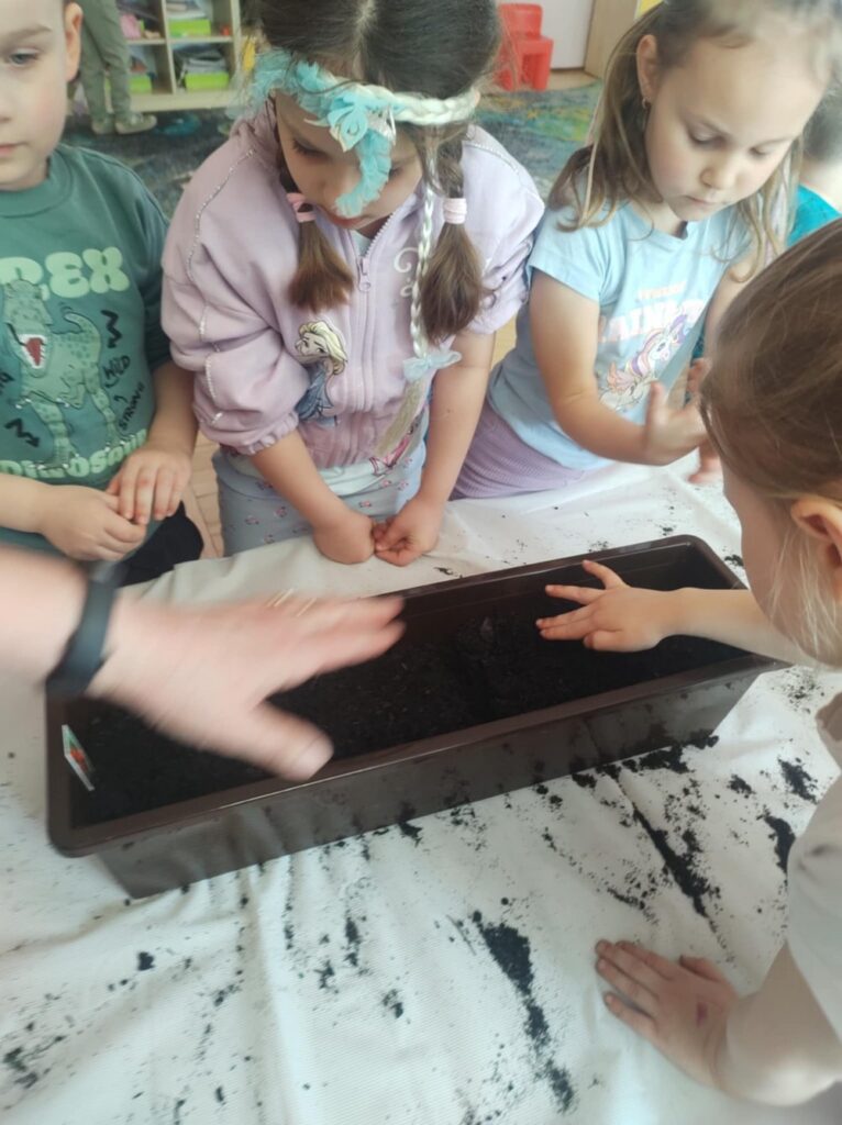 Grupa „Biedronki” z radością odkrywa tajemnice przyrody. Dzieci sadzą rośliny, uczą się, jak o nie dbać oraz poznają zawód ogrodnika. To pełne zabawy i nauki zajęcia, które rozwijają ciekawość świata i uczą troski o naturę.