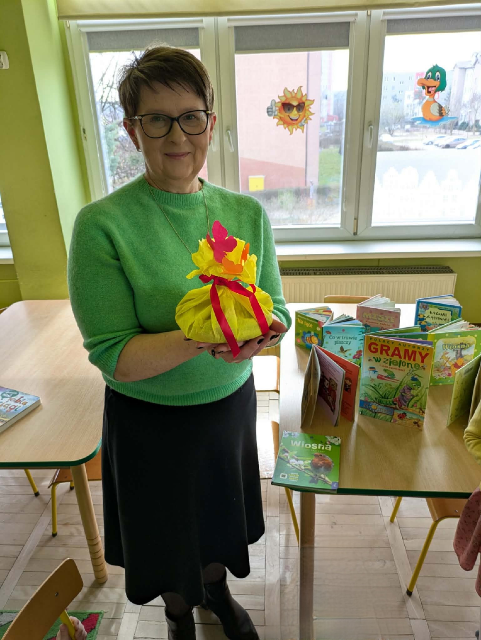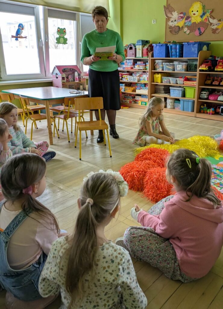 20 marca 2026 roku w ramach cyklicznych spotkań czytelniczych „Minutka z bajką”, dzieci z grupy „Motylki” z Przedszkola nr 16 gościły p. Agnieszkę – bibliotekarkę z Filii nr 2. Okazją do wizyty był „Pierwszy Dzień Wiosny”. Podczas spotkania przedszkolaki wysłuchały opowiadania Disneya pt. „Wiosna”, w którym Prosiaczek, Kubuś Puchatek i ich przyjaciele ze Stumilowego Lasu poszukiwali pierwszych oznak nowej pory roku. Była to doskonała okazja do rozmowy o zmianach zachodzących w przyrodzie. Dzieci chętnie dzieliły się swoją wiedzą na temat wiosny, rozwiązywały zagadki oraz opowiadały o ciekawostkach przyrodniczych. „Motylki” z dużym zainteresowaniem oglądały również książeczki o tematyce wiosennej, które przyniosła ze sobą pani Agnieszka. Na zakończenie spotkania każde dziecko otrzymało wiosenną kolorowankę oraz słodki upominek. W podziękowaniu za wizytę przedszkolaki wręczyły gościowi własnoręcznie wykonany portret Wiosny.
