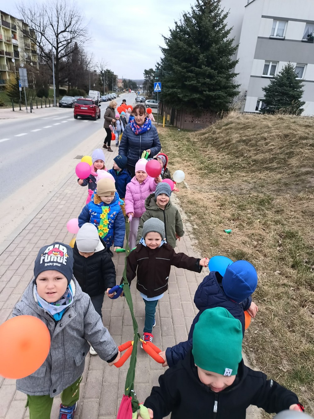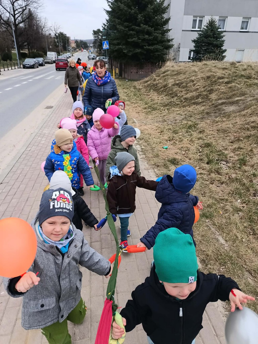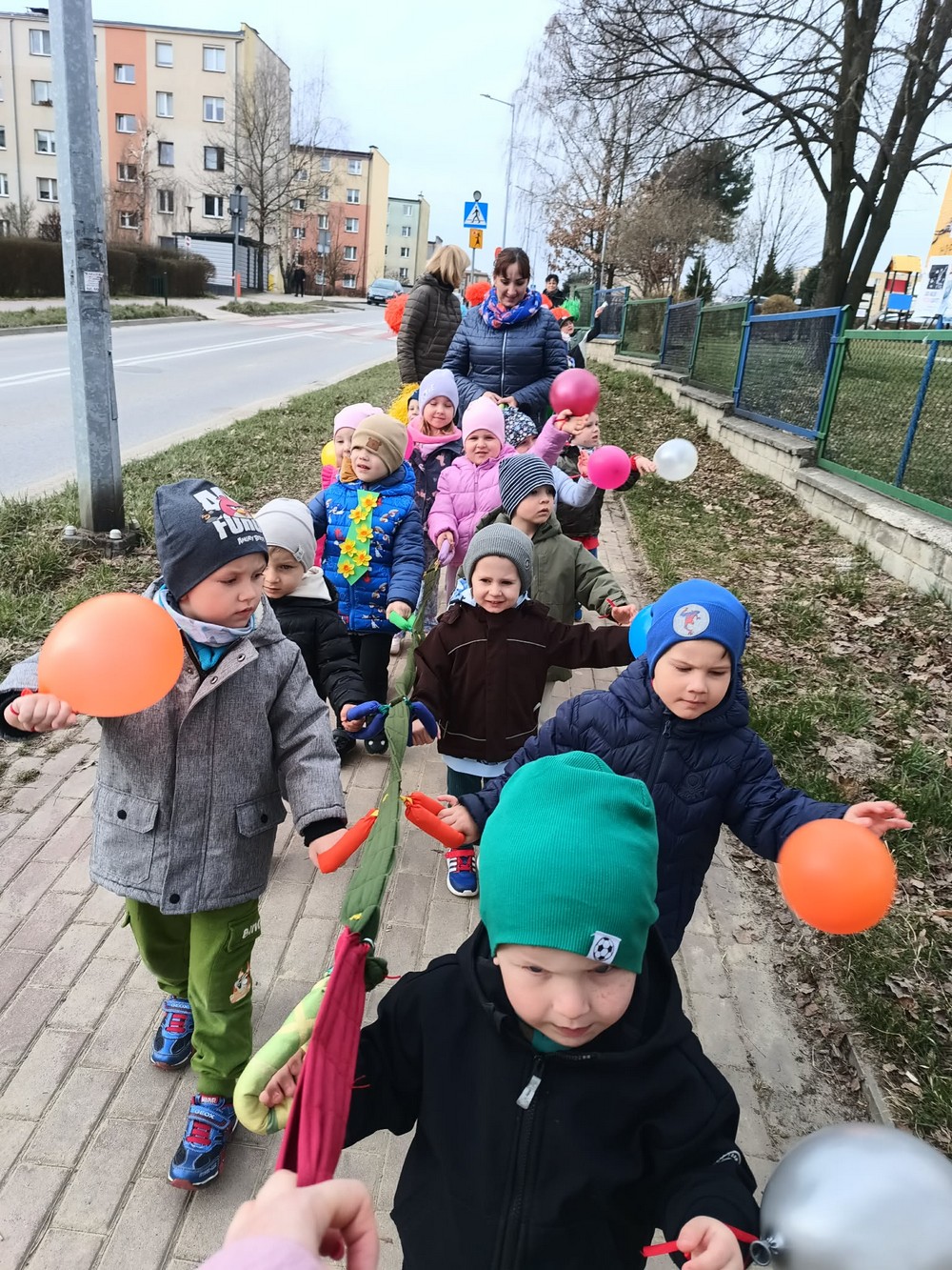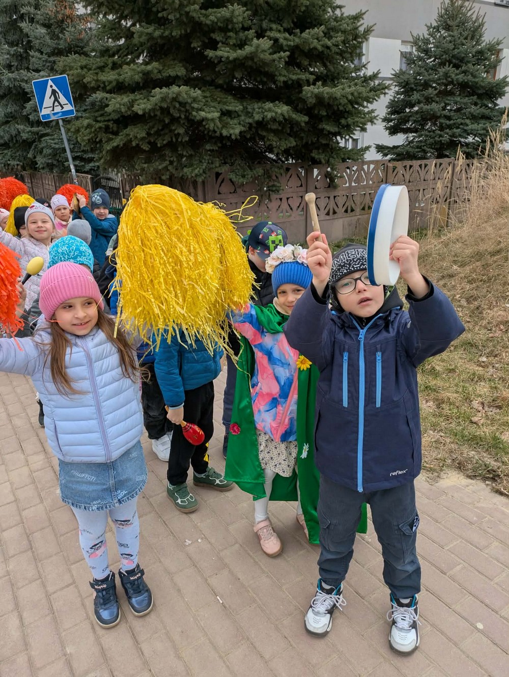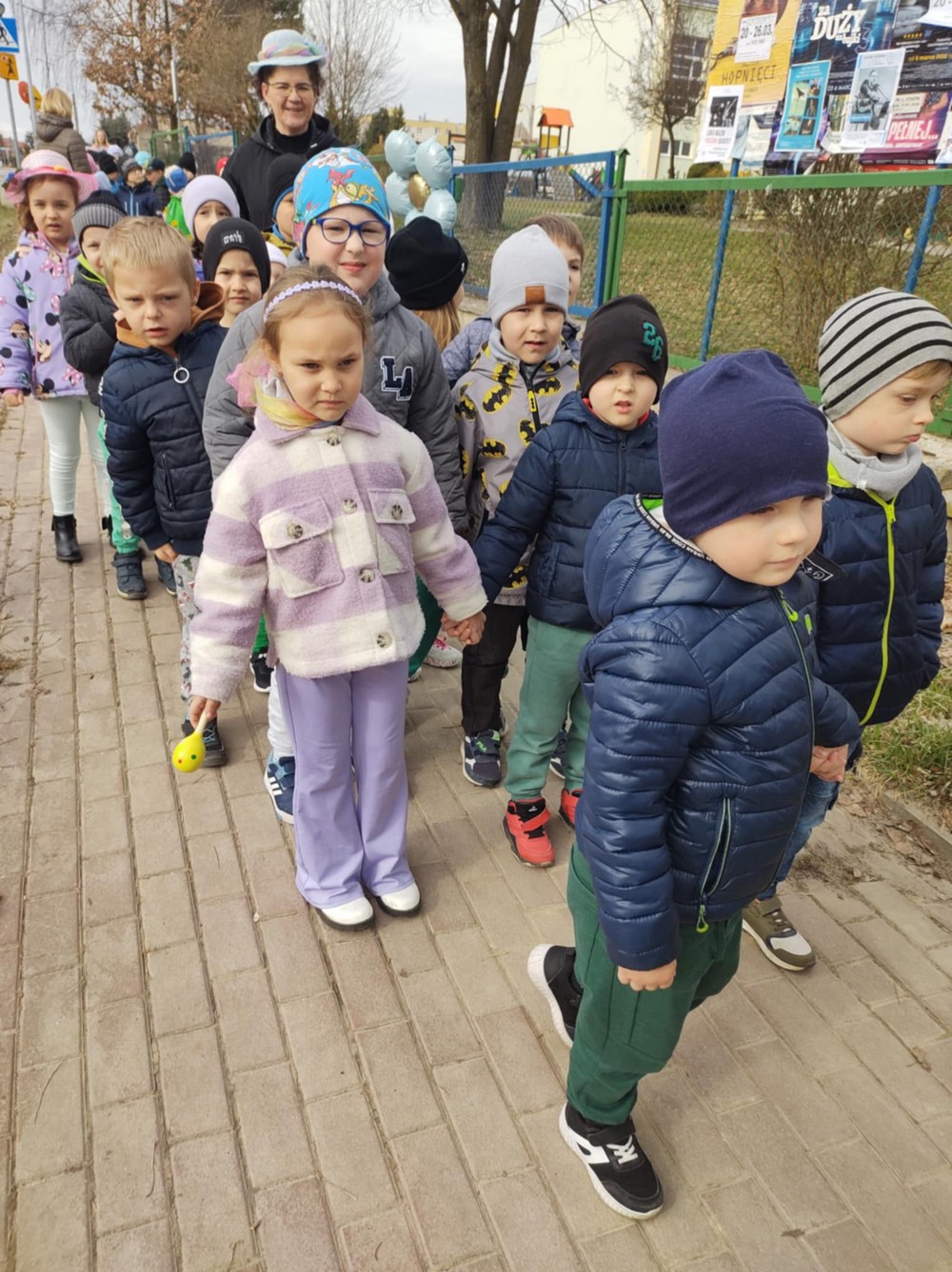 Podczas wspólnej wędrówki obserwowały pierwsze oznaki wiosny – kwitnące kwiaty, zielone pąki na drzewach oraz śpiew ptaków. Był to czas radości, ruchu na świeżym powietrzu i odkrywania budzącej się do życia przyrody. Powitaniu wiosny towarzyszyły również kolorowe stroje, instrumenty oraz wesołe piosenki przywołujące wiosnę.