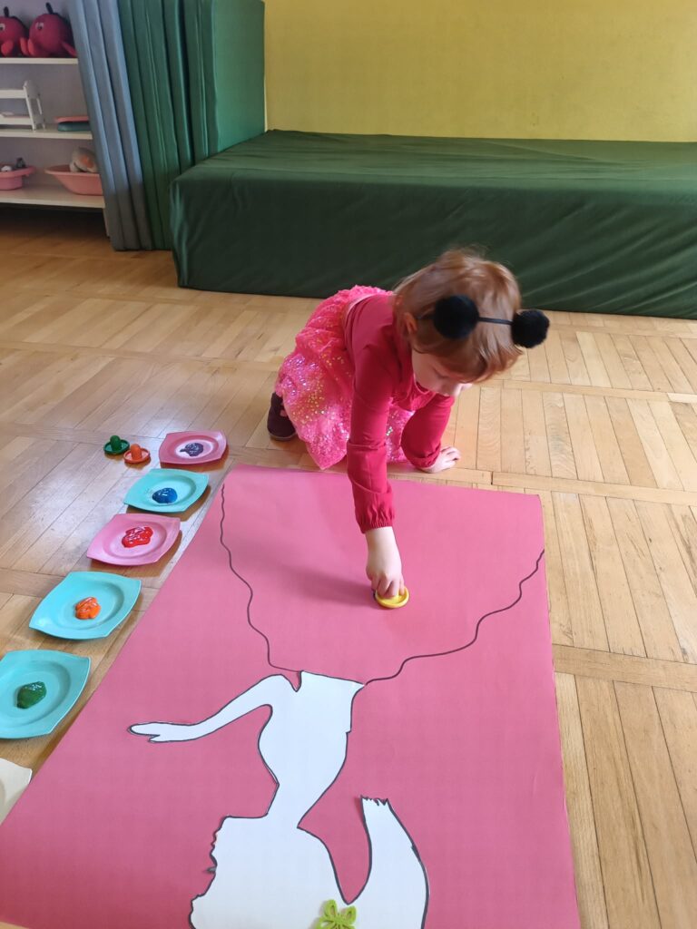 „Słoneczka” wykonują pracę plastyczną pt.: „Pani Wiosna”